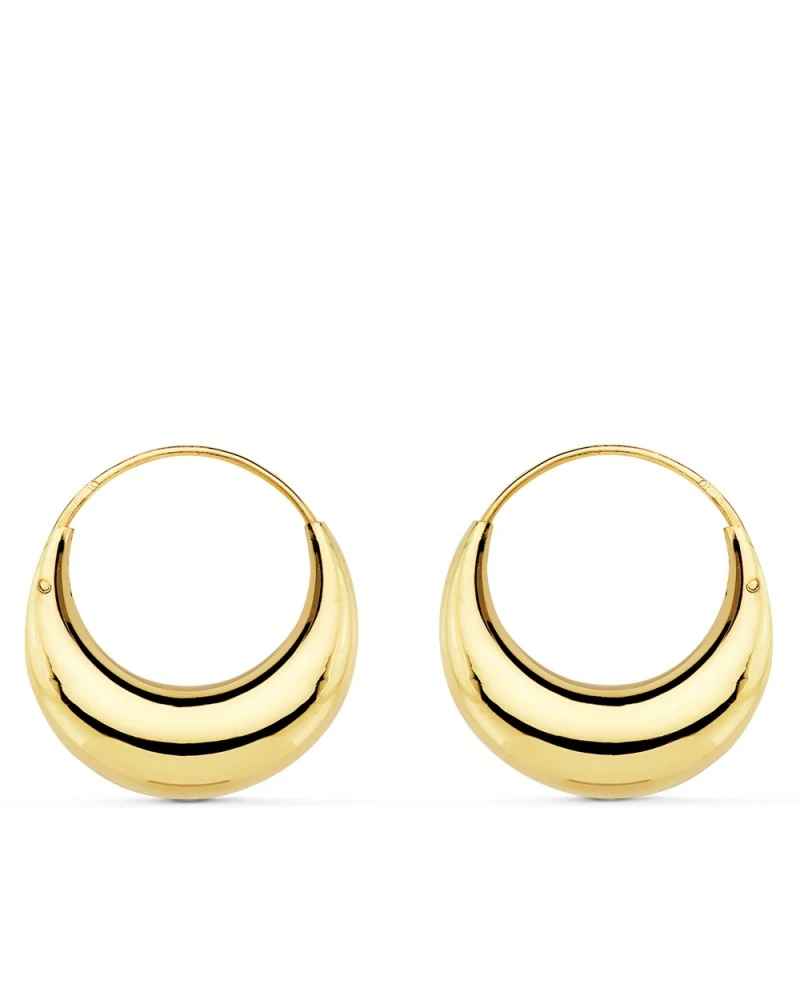 Aros de oro de 18 kilates con un diseño conocido como pirata y un tamaño de20x6mm. Estos pendientes forman parte de la colección oro de Falomir joyas. Los pendientes incluyen marca de contraste 750, sello oficial y se entrega con estuche de la marca.