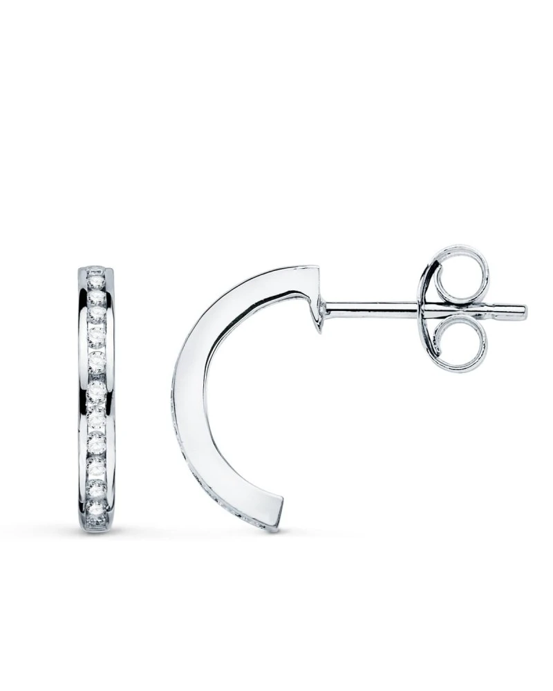 18K AROS ORO BLANCO ABIERTOS CON 28 DIAMANTES. 13 MM – 0.224 QTS PRESION