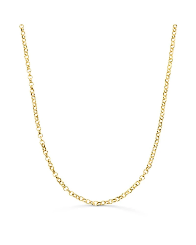 Cadena de oro de 18k hueca con un largo de 45cm y un ancho de 2,5mm. Esta cadena forma parte de la colección de oro de Falomir Joyas, y se entrega con estuche y marca de contraste oficial.