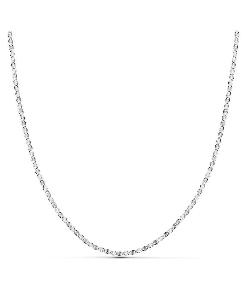 Cadena de oro blanco de 18 kilates con un largo de 40cm. La cadena tiene un ancho de 1,5mm. Es una cadena corta y fina, ideal para chica. Estas cadenas forman parte de la colección oro de Falomir joyas. Las cadenas incluyen marca de contraste 750, sello oficial y se entrega con estuche de la marca.