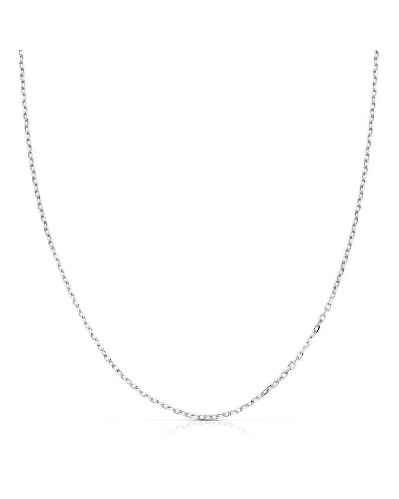 Cadena oro blanco de 18 kilates con cierre reasa y un largo de 50 cm. Esta cadena tiene un ancho de 1 mil ímetros por lo que es una cadena muy fina. Incluye una marca de contraste oficial 750 y sello de fabricante. Se entrega con estuche y toda la garantía de la joyería más antigua de España.