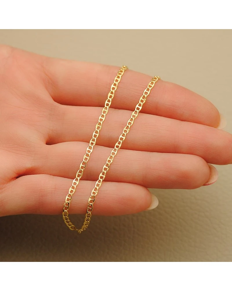 Cadena de oro de 18k con un largo de 45cm y un ancho de 2mm. Esta cadena forma parte de la colección de oro de Falomir Joyas, y se entrega con estuche y marca de contraste oficial.