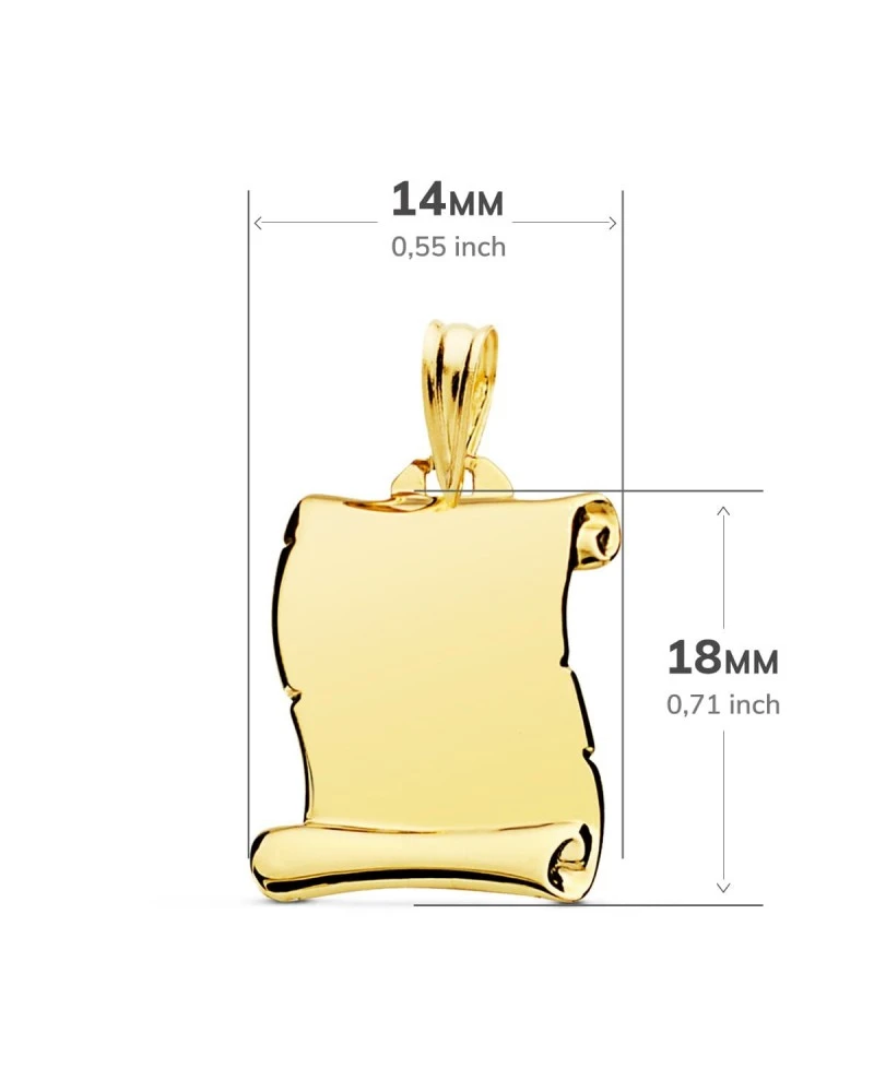 Chapa de oro de 9k con un tamaño de 18x14mm. Las chapas forman parte de la colección de oro de Falomir Joyas, y se entrega con estuche y marca de contraste oficial. *El precio que aparece no incluye ni grabado ni personalización.