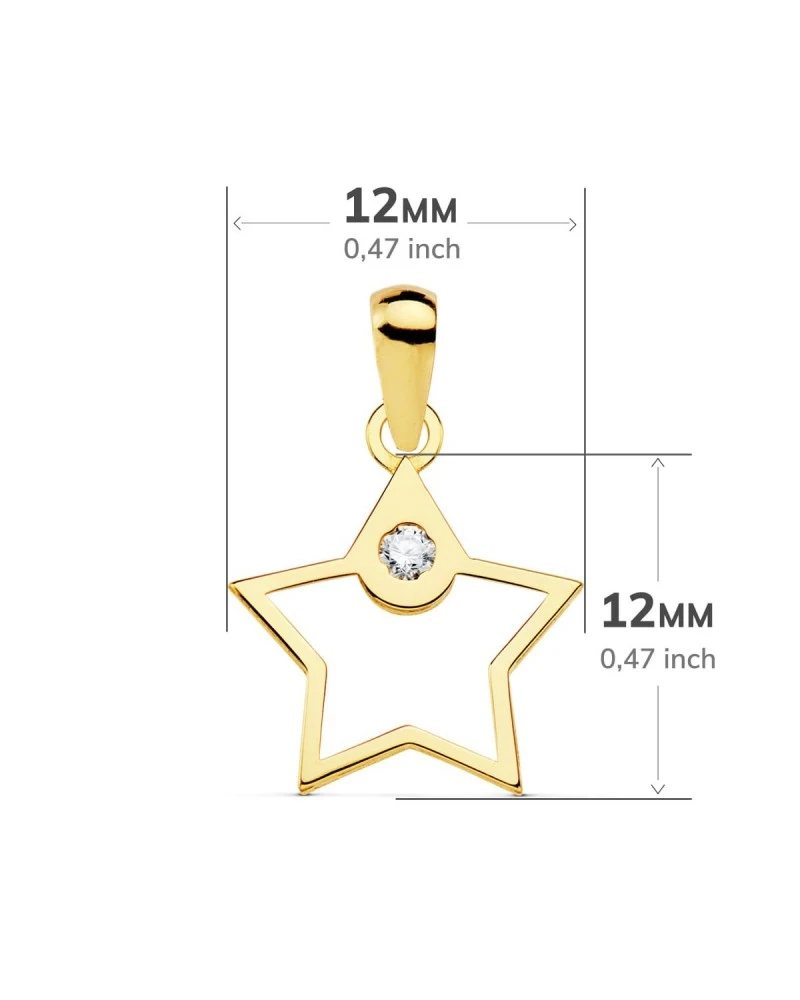 Colgante de oro de 18 kilates con una estrella y circonita y un tamaño de 12x12mm