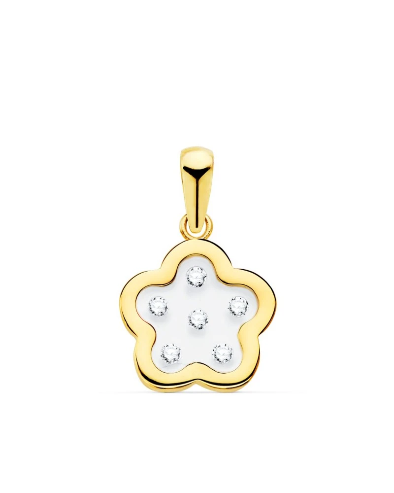 Colgante de oro de 18 kilates con una flor Airshine y un tamaño de 11x11mm. Este colgante forma parte de la colección de oro de Falomir Joyas, y se entrega con estuche y marca de contraste oficial.
