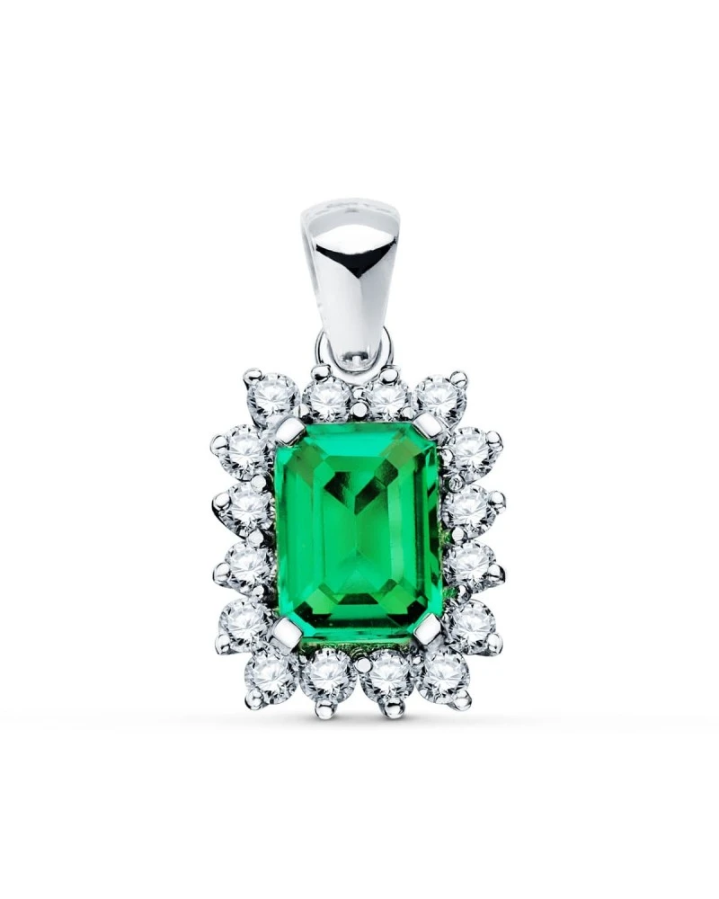 18K COLGANTE O.BLANCO ESMERALDA 1.50 QT. 16 DIAMANTES 0.56 QTS. SI-H. 13X11MM