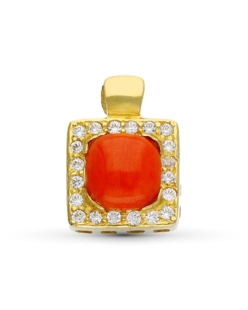 18K COLGANTE ORO AMARILLO CORAL CUADRADO CON CIRCONITAS