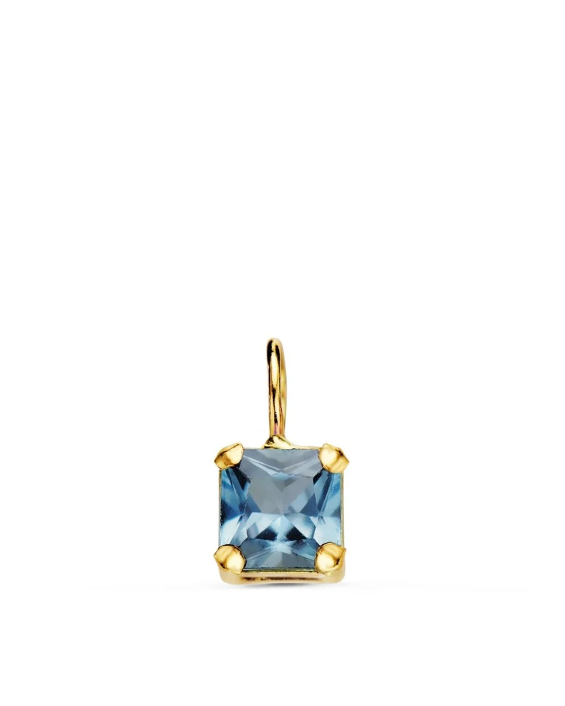 18K COLGANTE ORO AMARILLO CUADRADO CON GARRAS Y PIEDRA COLOR AGUAMARINA 5,5 X 5,5 MM.