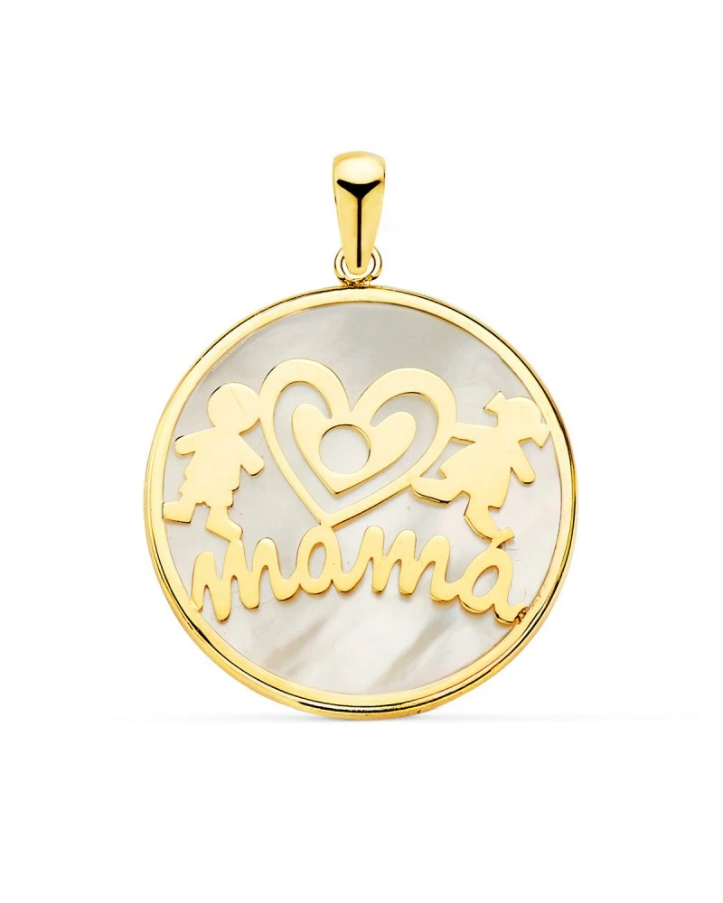 18K COLGANTE ORO AMARILLO MAMA NACAR NI—O-NI—A 20 MM