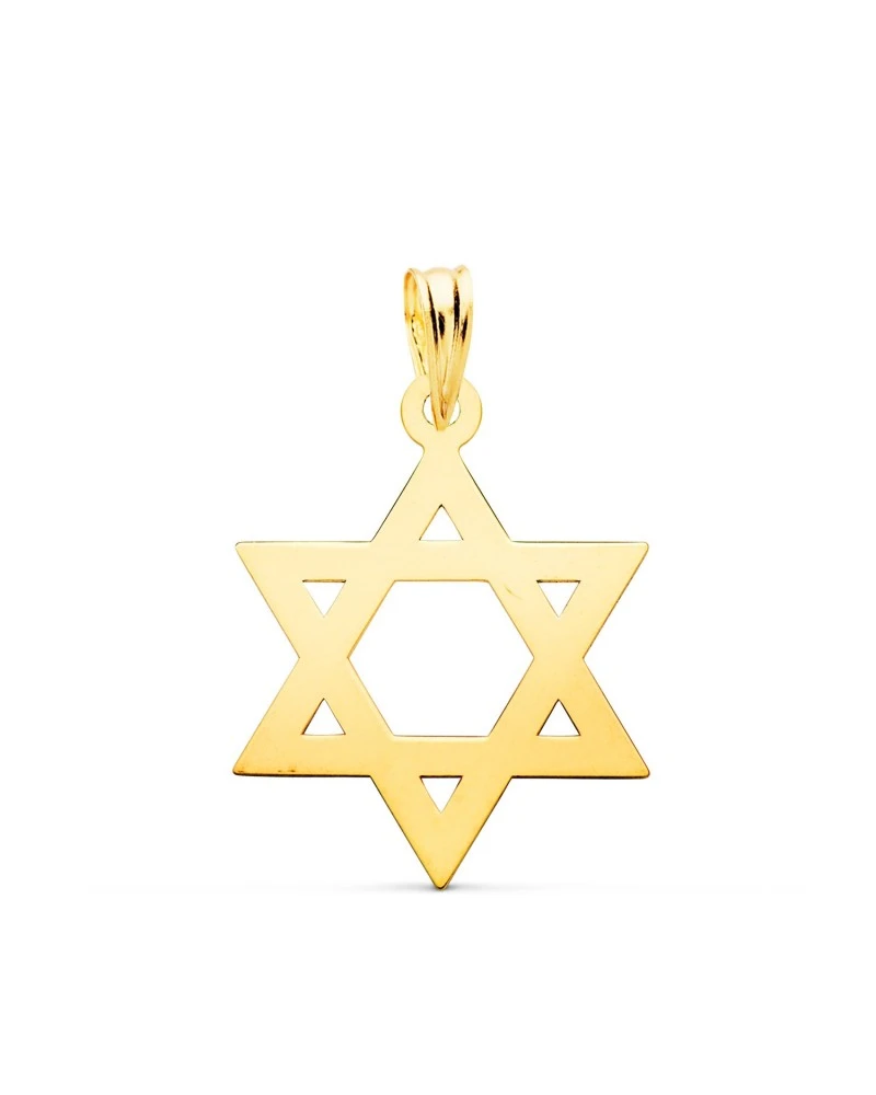 18K COLGANTE ORO AMARILLO ESTRELLA DE DAVID BRILLO 22 X 17 MM