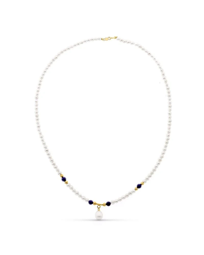 18K COLLAR ORO AMARILLO PERLA CONCHA NATURAL Y LAPIZLAZULI