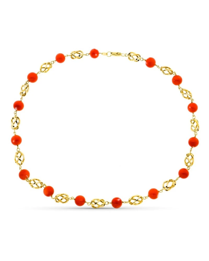 18K COLLAR ORO AMARILLO JAULA CORAL FINO JAPONES 9-9.5 MM 50CM
