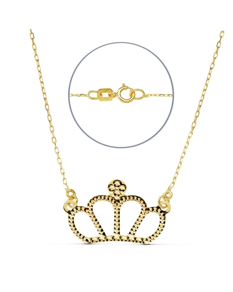 Collar de oro amarillo de 18 kilates con una corona de un tamaño de unos 12×8 mm. Este collar tiene un largo de 45cm. El collar forma parte de la colección de oro de Falomir Joyas, y se entrega con estuche y marca de contraste oficial.