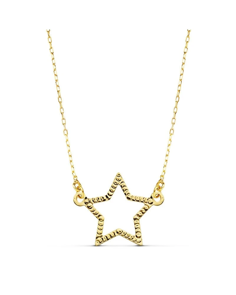 Collar de oro amarillo de 18 kilates con una estrella de 14×11 mm. Este collar tiene un largo de 45cm. El collar forma parte de la colección de oro de Falomir Joyas, y se entrega con estuche y marca de contraste oficial.