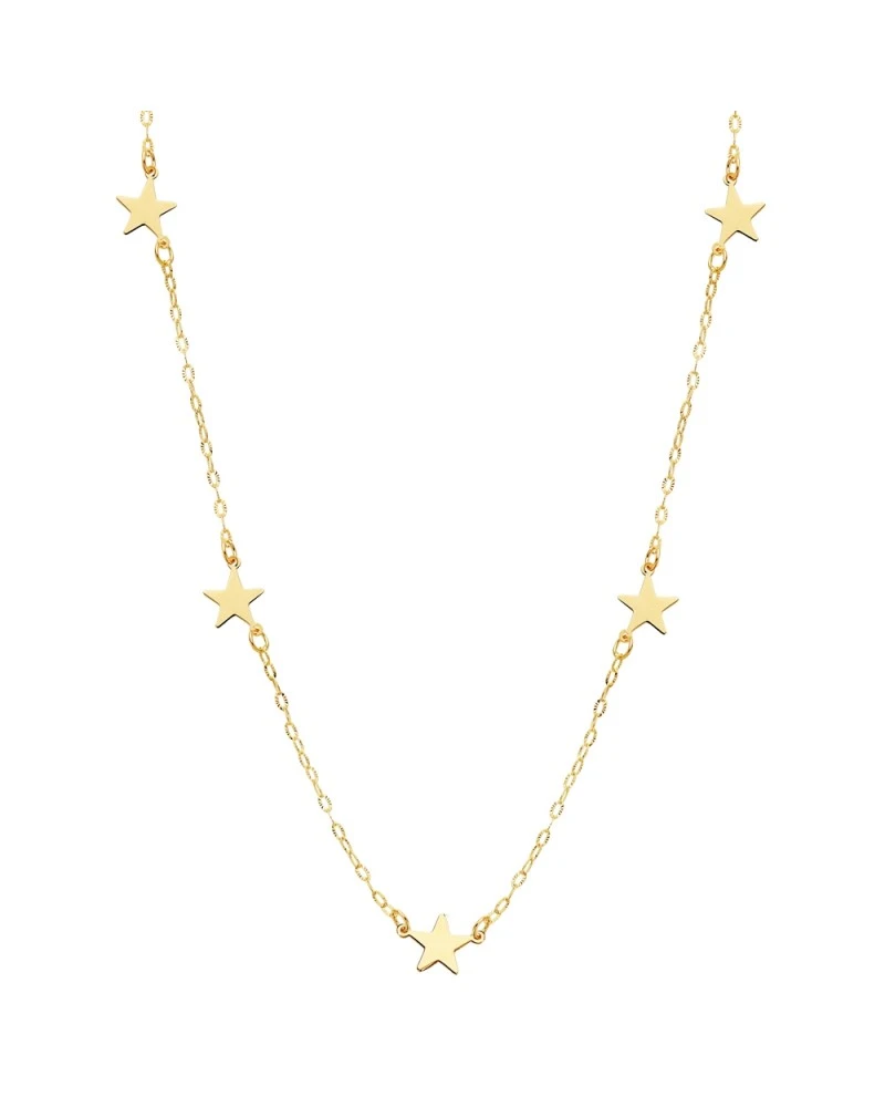 Collar de oro amarillo de 18 kilates con estrellas. Este collar tiene un largo de 42cm. El collar forma parte de la colección de oro de Falomir Joyas, y se entrega con estuche y marca de contraste oficial.