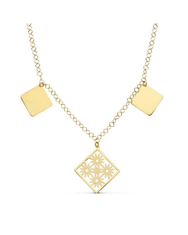 Collar de oro amarillo de 18 kilates con rombos colgantes. Este collar tiene un largo de 44cm. El collar forma parte de la colección de oro de Falomir Joyas, y se entrega con estuche y marca de contraste oficial.