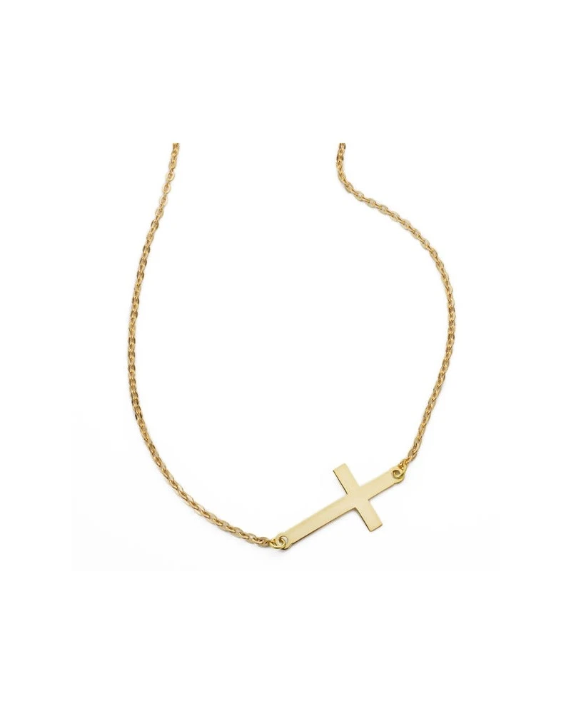 Collar de oro amarillo de 18 kilates con una cruz de unos 24×12 mm. Este collar tiene un largo de 42cm. El collar forma parte de la colección de oro de Falomir Joyas, y se entrega con estuche y marca de contraste oficial.