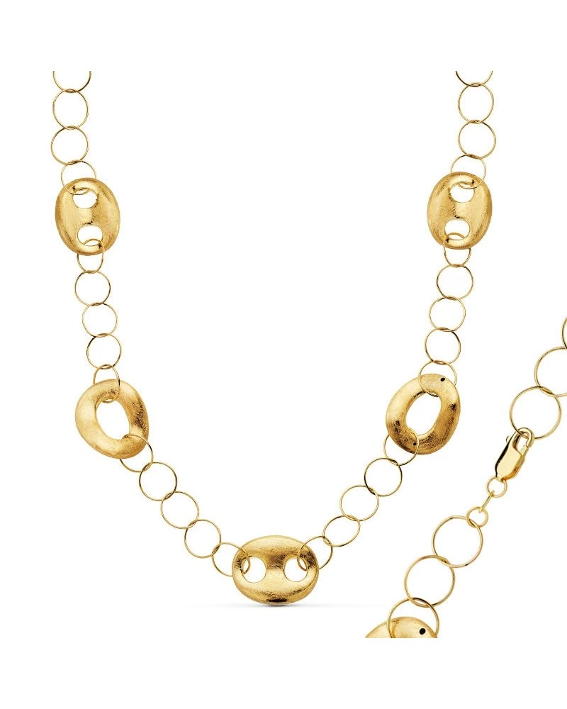 Collar de oro amarillo de 18 kilates con una serie de motivos conocidos como nudos de barco. Este collar tiene un largo de 46cm. El collar forma parte de la colección de oro de Falomir Joyas, y se entrega con estuche y marca de contraste oficial.