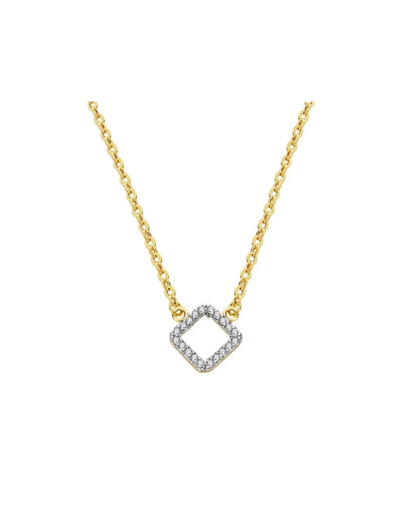 Collar de oro blanco y amarillo de 18 kilates con con un colgantito con circonitas. Este collar tiene un largo de 45cm. El collar forma parte de la colección de oro de Falomir Joyas, y se entrega con estuche y marca de contraste oficial.
