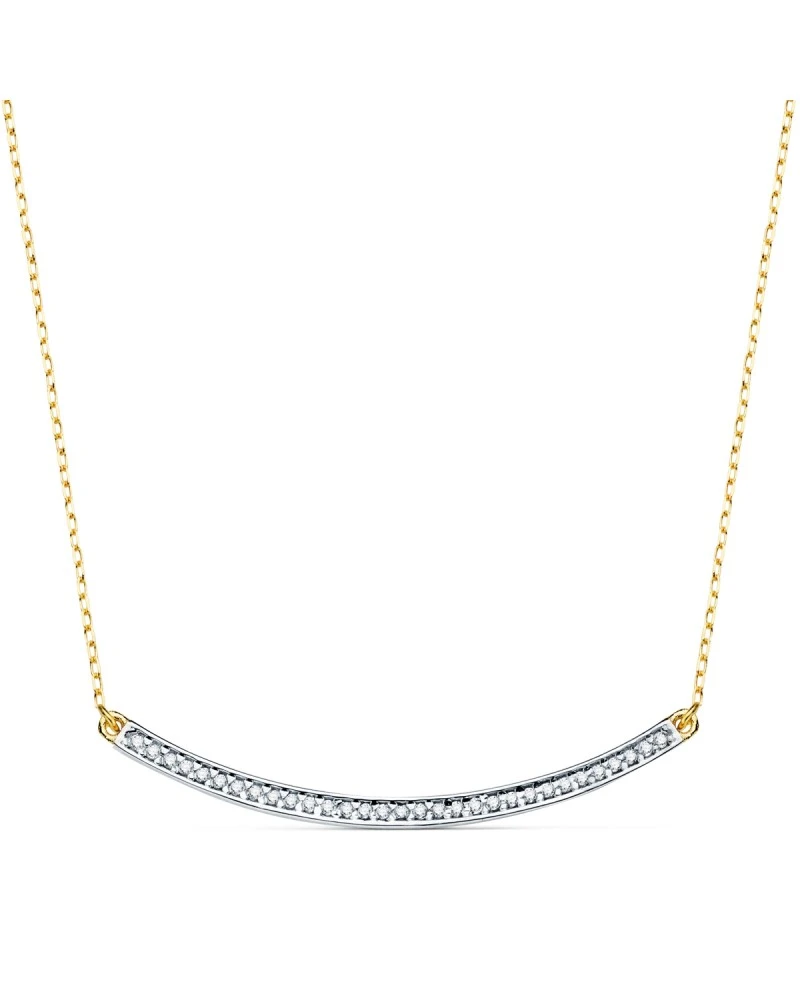 Collar de oro blanco y amarillo de 18 kilates con con un barrita con circonitas. Este collar tiene un largo de 44cm. El collar forma parte de la colección de oro de Falomir Joyas, y se entrega con estuche y marca de contraste oficial.