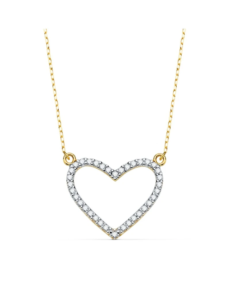 Collar de oro blanco y amarillo de 18 kilates con con un corazón de unos 18×15 mm. Este collar tiene un largo de 43cm. El collar forma parte de la colección de oro de Falomir Joyas, y se entrega con estuche y marca de contraste oficial.