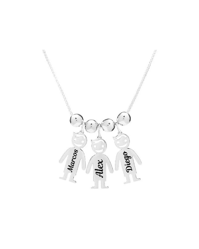 Colgante con forma de tres niñas tallado en plata de primera ley cadena incluida. En la parte central se puede grabar el nombre de cada uno de los colgantes. Es un regalo ideal para las mamás, para celebrar un nacimiento, un cumpleaños o por alguna fecha señalada. El colgante se entrega con una cadena de plata. Se entrega con estuche y preparado para regalo si queréis, sin ningún coste adicional. Como todos los productos personalizados, tiene un tiempo envío de 15 días.