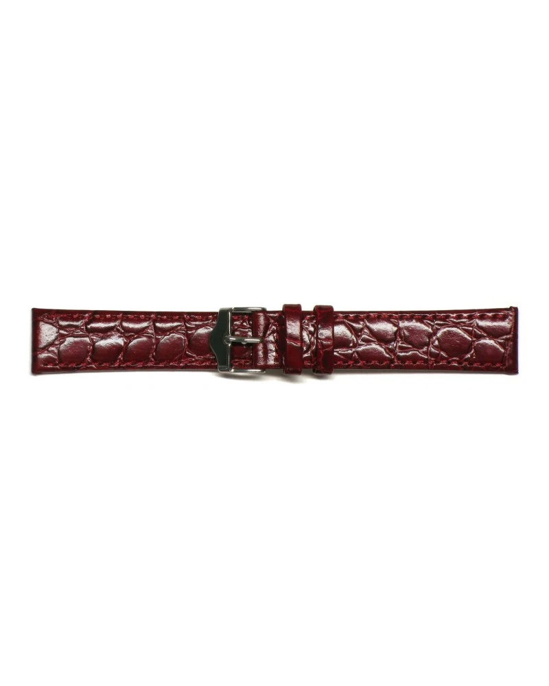 Así es esta correa de piel de 18 milímetros y, acabado en color burdeos, con pespunte del mismo color.