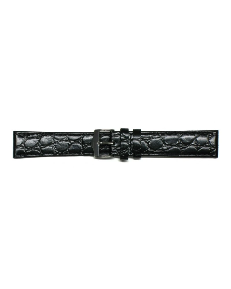 Así es esta correa de piel de 18 milímetros y, acabado en negro, con pespunte del mismo color.