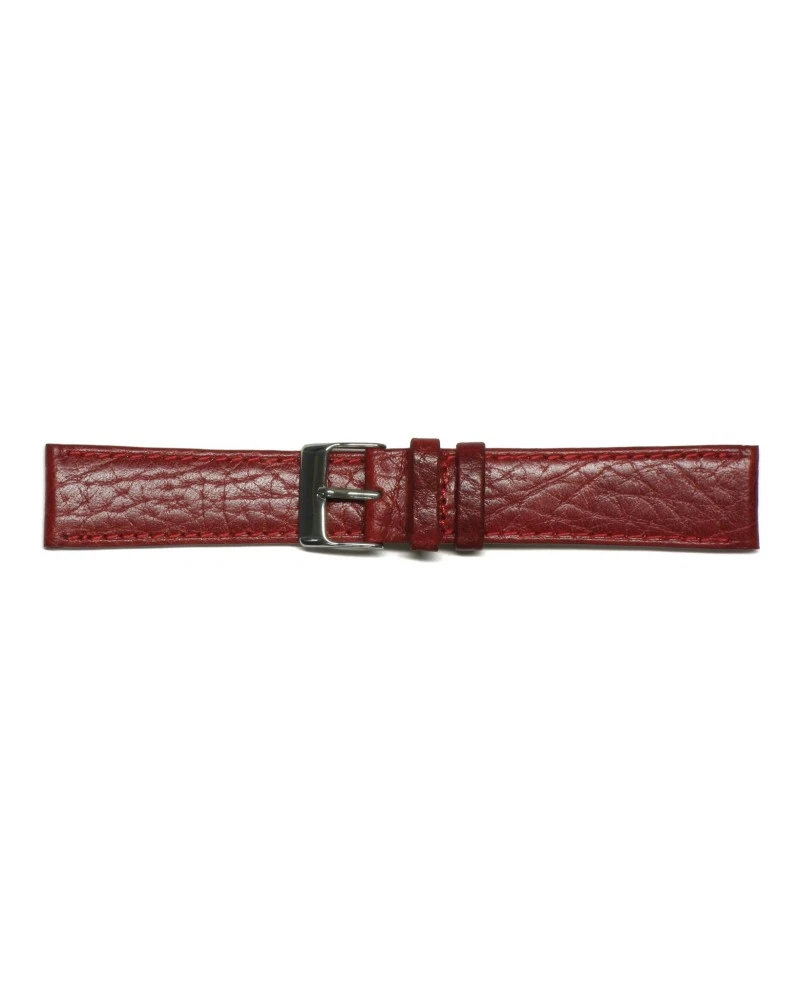Así es esta correa de piel de 18 milímetros y, acabado en rojo, con pespunte del mismo color.