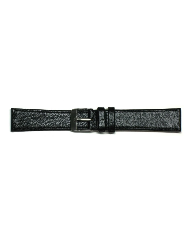 Así es esta correa de piel de 20 milímetros y, acabada en negro. Con pespunte del mismo color