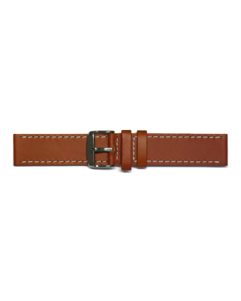 Así es esta correa de piel de 24 milímetros y, acabada en marrón, Con pespunte de color blanco.