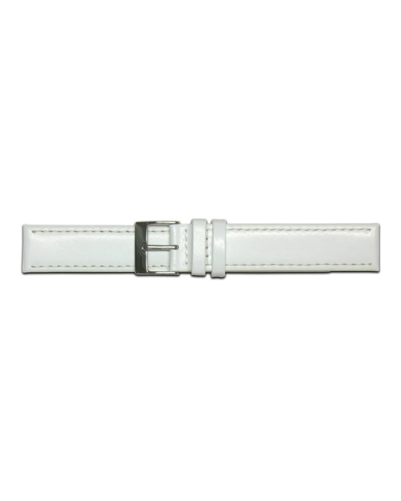 Así es esta correa de piel de 24 milímetros y, acabada en blanco, Con pespunte del mismo color.