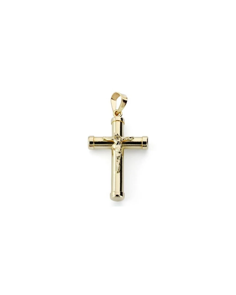 Cruz de oro de 18 kilates con un cristo y un tamaño de 24 X 15x3mm. Las cruces forman parte de la colección de oro de Falomir Joyas, y se entregan con estuche y marca de contraste oficial.