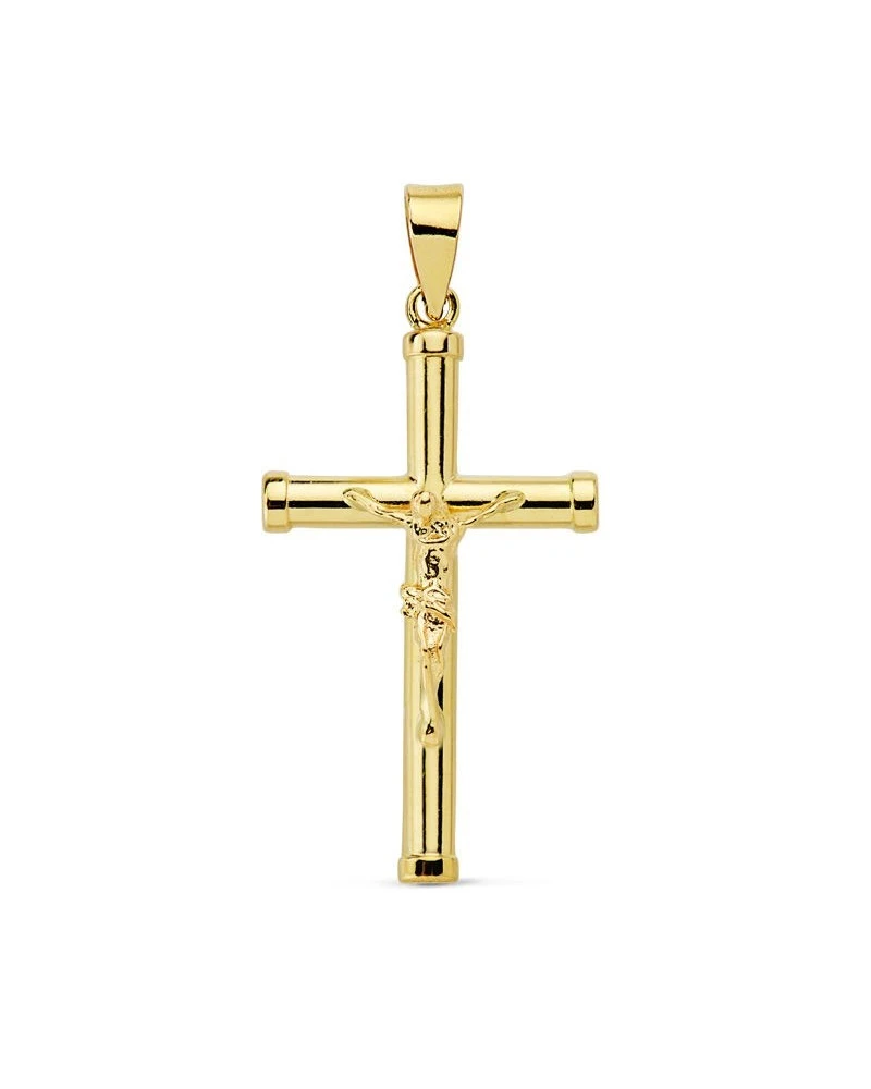 Cruz de oro de 18 kilates con un cristo y un tamaño de 25x15mm. Tubo 2,5mm.