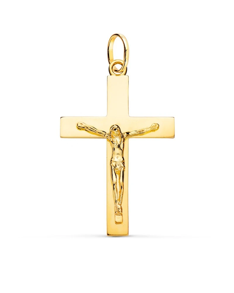 18K CRUZ ORO AMARILLO CRISTO MACIZA PALO RECTANGULAR BRILLO 38 X 24 MM