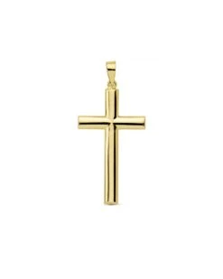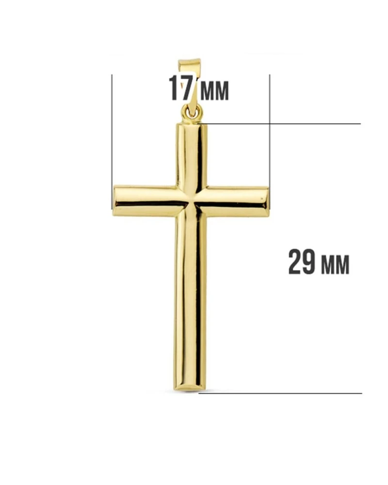 Cruz de oro de 18 kilates lisa y un tamaño de 31x17mm. Las cruces forman parte de la colección de oro de Falomir Joyas, y se entregan con estuche y marca de contraste oficial.