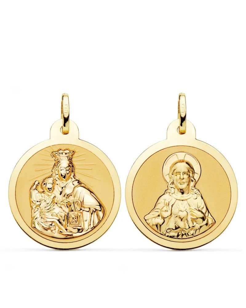 Medalla de oro de 18k con un tamaño de 24mm. Las medallas forman parte de la colección de oro de Falomir Joyas, y se entrega con estuche y marca de contraste oficial.