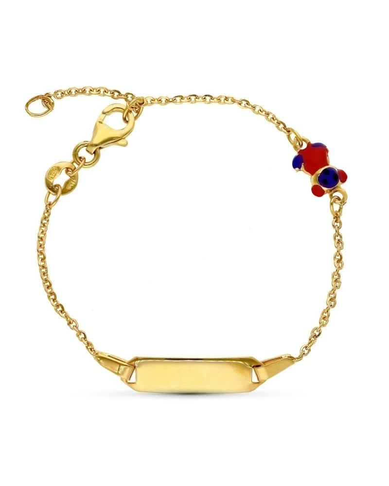 Esclava de oro amarillo con osito de esmalte, con un largo de 16 cm. Este sello forma parte de la colección de oro de Falomir Joyas, y se entrega con estuche y marca de contraste oficial.