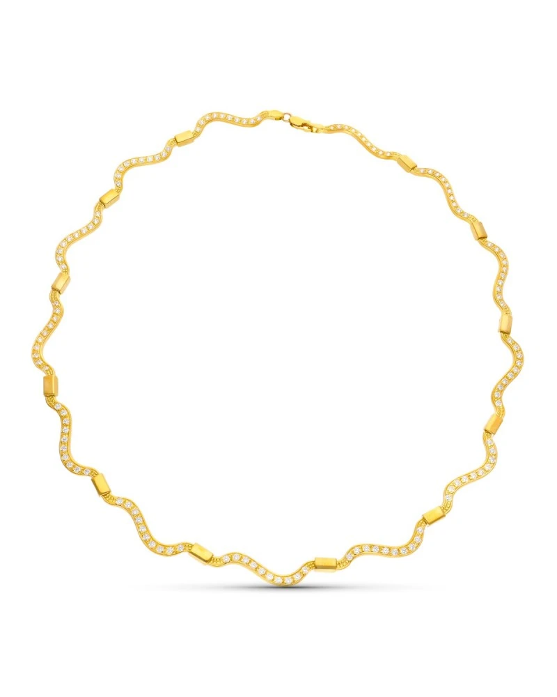 Gargantilla de oro amarillo de 18 kilates con un diseño moderno. La gargantilla forma parte de la colección de oro de Falomir Joyas, y se entrega con estuche y marca de contraste oficial.