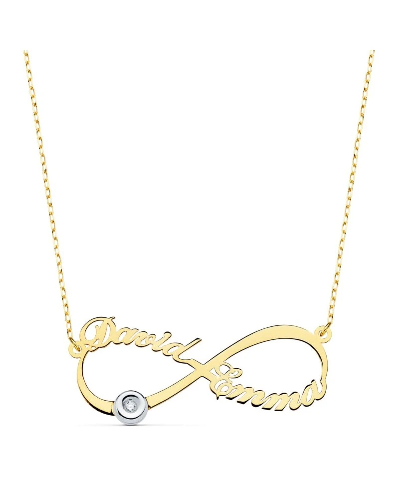 GARGANTILLA INFINITO PERSONALIZADO 2 NOMBRES 35 MM DIAMANTE CADENA 44+2 CM