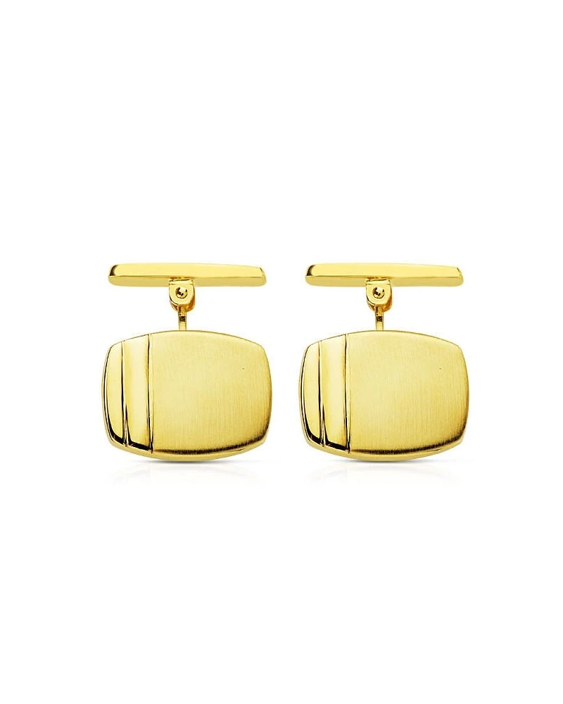 Originales gemelos de oro amarillo de 18 kilates con forma de tonel. Las medidas de estos gemelos son 17 milímetros de ancho por 13 de largo.