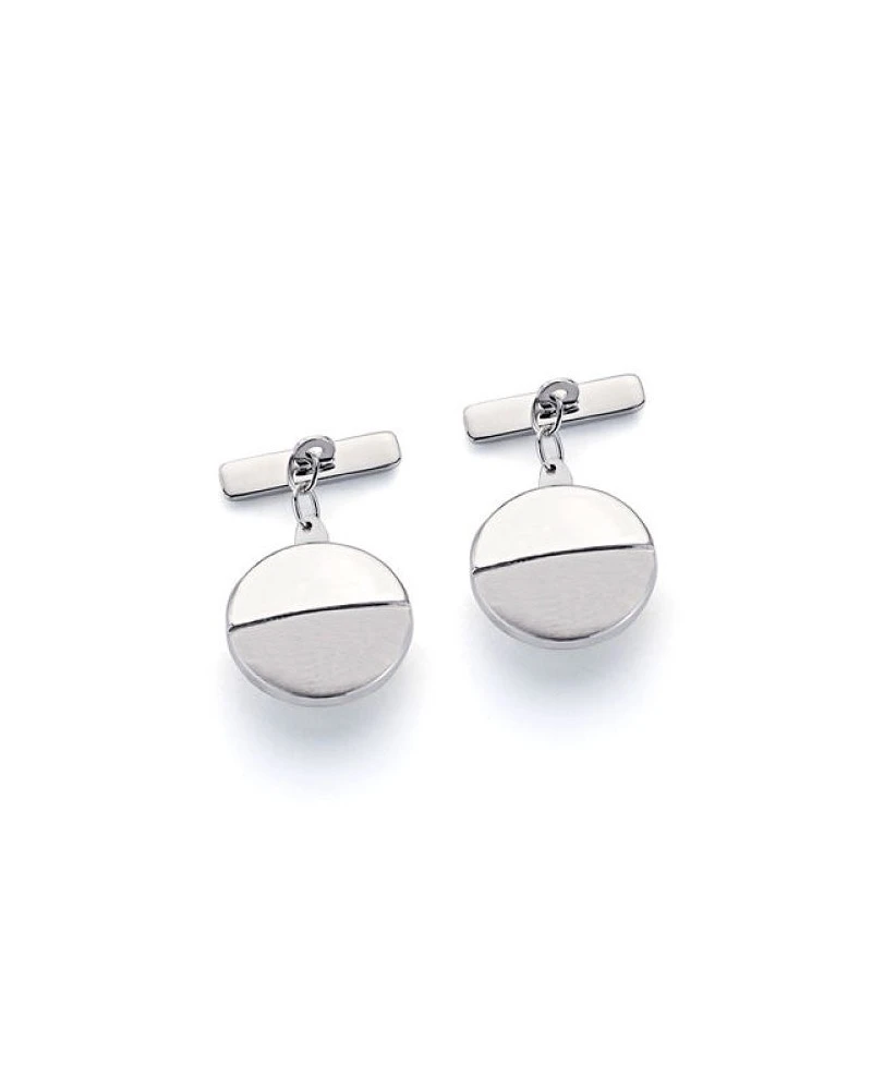 De forma plana y redondos. Comina el mate en la parte iferior y brillo en la parte superior. Con una cadena que acaba en un cierre rígido.