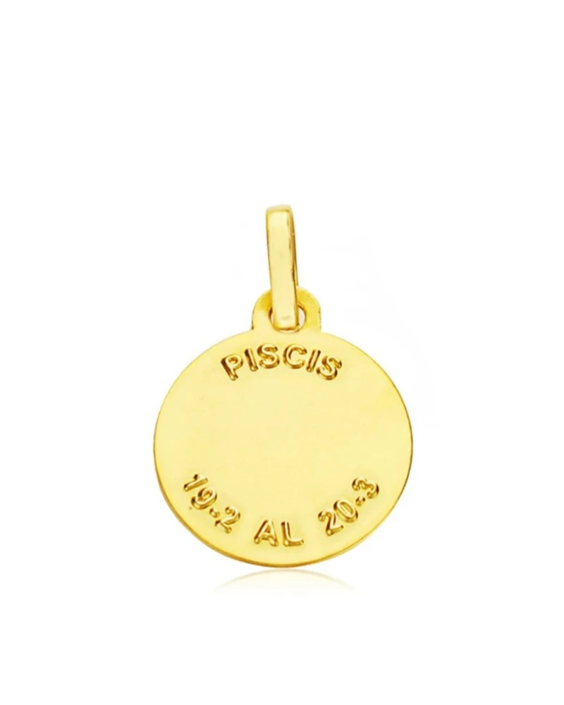 Colgante de oro de 18 kilates de el horóscopo de Piscis y un tamaño de 13mm. Este colgante forma parte de la colección de oro de Falomir Joyas, y se entrega con estuche y marca de contraste oficial.