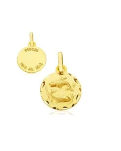 Colgante de oro de 18 kilates de el horóscopo de Piscis y un tamaño de 13mm