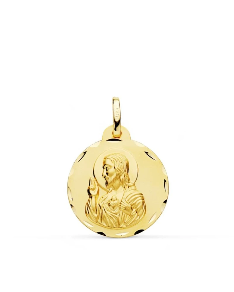 Medalla de Corazón de Jesús de oro de 9k con un tamaño de 20mm. Las medallas forman parte de la colección de oro de Falomir Joyas, y se entrega con estuche y marca de contraste oficial.