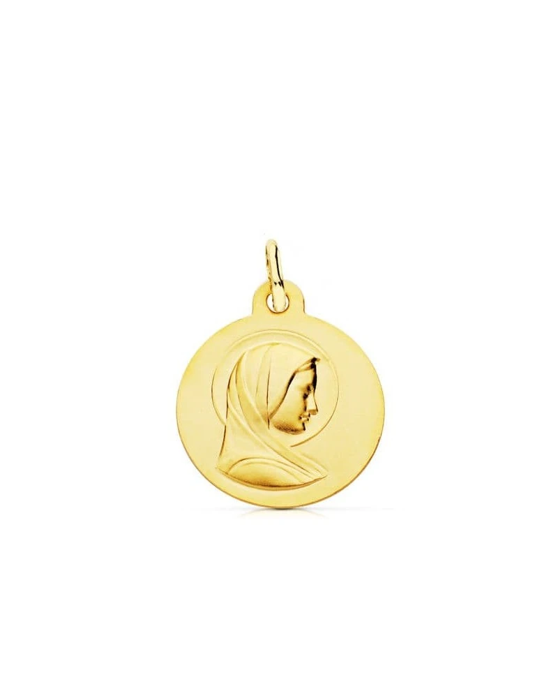 Medalla de Maria Francesa de oro de 9k con un tamaño de 16mm. Las medallas forman parte de la colección de oro de Falomir Joyas, y se entrega con estuche y marca de contraste oficial.