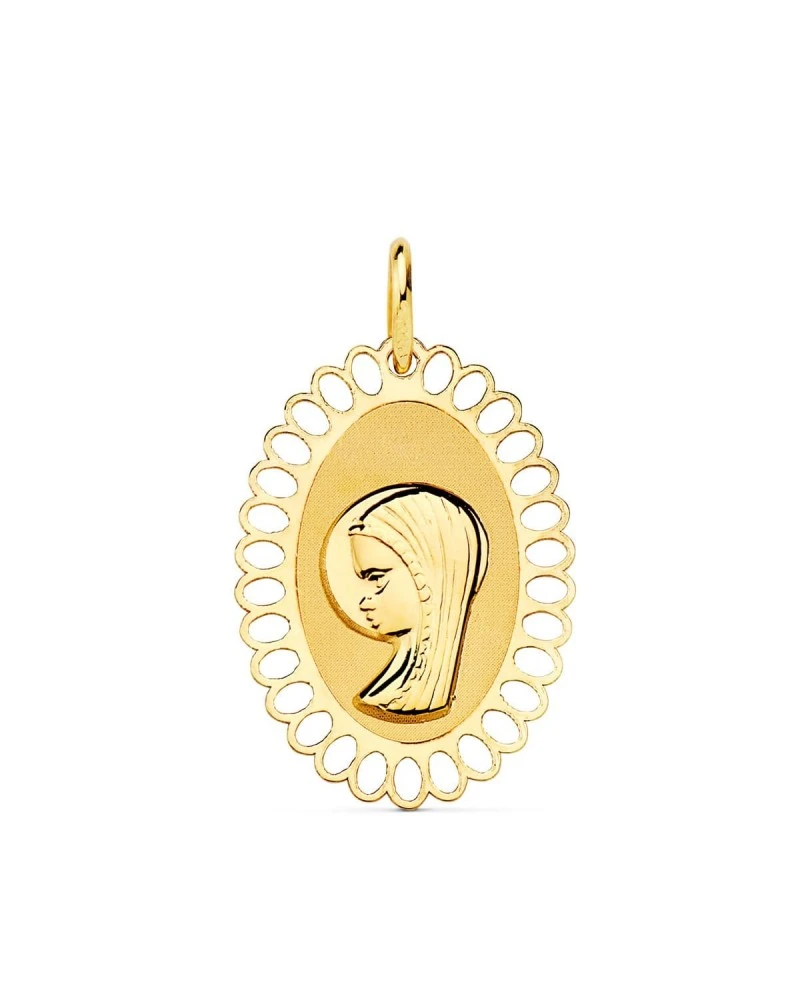 18K MEDALLA VIRGEN NI—A CERCO OVAL CALADO 21X16 MM