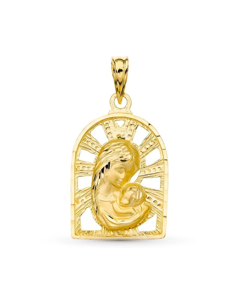 Medalla de oro de 18 kilates, y con un tamaño de 23x15mm. La medalla forma parte de la colección de oro de Falomir Joyas, y se entrega con estuche y marca de contraste oficial.