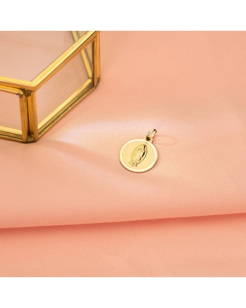 Medalla de oro de 18k con un tamaño de 16mm. Las medallas forman parte de la colección de oro de Falomir Joyas, y se entrega con estuche y marca de contraste oficial.
