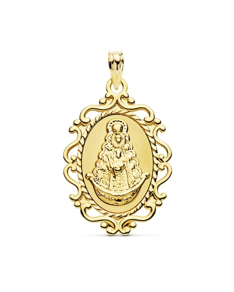 Medalla de oro de 18 kilates con la virgen del Rocio y un tamaño de 31x21mm